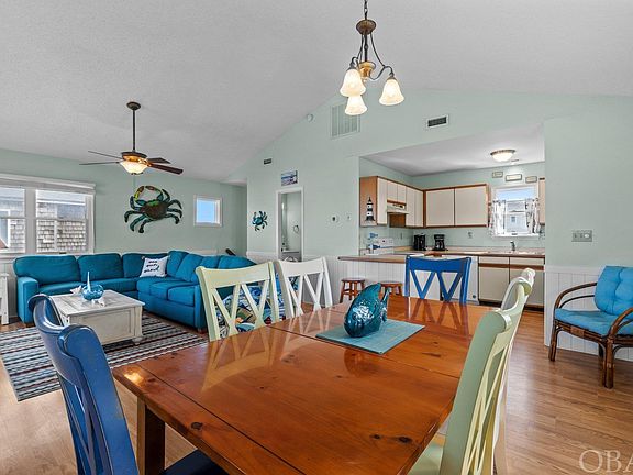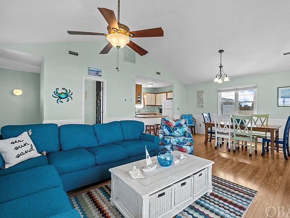 Located just three lots away from the beach in the heart of Kill Devil Hills, this home boasts TREX decking, making it the perfect seaside retreat. Its prime location offers proximity to restaurants, shopping, and entertainment, with the beach just steps away. The top level features an open floor plan with a living, dining, and kitchen area, complete with cathedral ceilings and an ocean view. Additionally, there's a full bathroom, a second den with a queen sleeper sofa, and a sun deck for enjoying the sound of the waves and fresh salt air. All decks were replaced in 2016/2017 with low-maintenance TREX Decking & Vinyl railings. On the mid-level, you'll find three bedrooms: a king bedroom with access to the covered deck, a queen master suite with private access to the covered deck, and another queen room. An updated bathroom with a double sink vanity and tiled shower completes this level. The bottom level features a spacious backyard, perfect for grilling and playing games, as well as a outdoor shower, fish cleaning station, large owners' closet, and a laundry room with space for additional storage. Meticulously maintained, "A Change in Attitude" boasts several upgrades and improvements, including: New Roof (2022) TREX Decking with Vinyl Railings (2016/2017) Septic system (2014) New gas grill (2021) Newer washer/dryer Water heater (2013)