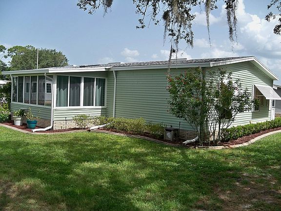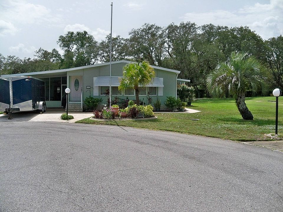 This well kept 1596 SQ. FT. 2 BR 2 BA home has a spectacular view of the 18th tee box, Fairway, Green and Clubhouse in the background all from FL Room. This home features an entryway large screen room, Nice size shed, Inside Laundry room, Big Bedrooms and open floor plan from a Large kitchen with breakfast bar island into a 13 X 18 Family Room, a 13 X25 Living Room, And a dining room, All This Plus a Golf Cart. This home is a must see.