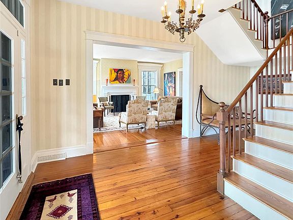 Welcome to the Estate of Lucinda Owens, the founder of Washington MO! Featuring a Missouri River View, this stunning property was built in 1838 on 1.3 acres. Boasting a perfect blend of classic architecture & modern updates, the Grand Entry Foyer leads you to either the Library w/ a fireplace & built-in bookshelves to the left or straight ahead to the dining room, which is perfect for entertaining guests w/ seating for up to 12. The chef's dream kitchen is a true masterpiece, w/ granite countertops, Wolf/Subzero/Bosch, abundant cabinets, extras, & huge island with seating connecting to the hearth area & adjacent breakfast room. The parlor is perfect for relaxing after a long day or holiday gatherings. Upstairs offers a massive primary bedroom suite including a Luxury bathroom. Plus 2 additional bedrooms & charming hall bath. Offering 2 Front Porches, Large Patio, & Sunroom. 3-Car Garage. High Ceilings & Large glass windows offer breathtaking views of the beautifully landscaped grounds. Additional Rooms: Wine Cellar
