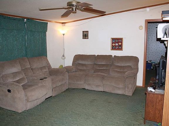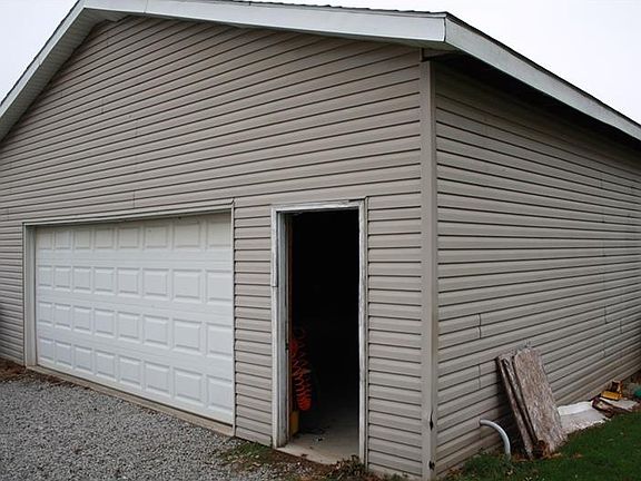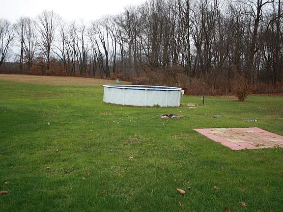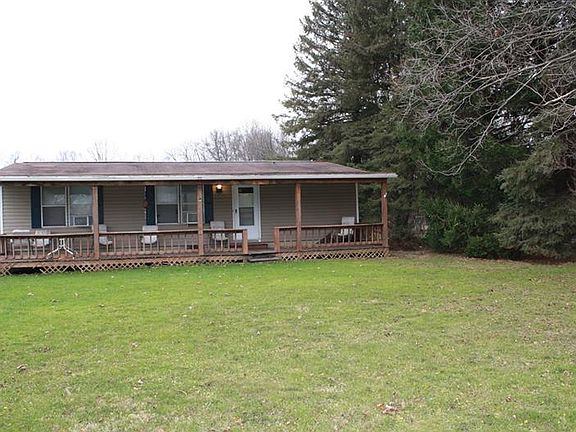 Double wide mobile home secured to a full basement that is heated. Big yard. 4 car detached garage. Swimming pool. Lots of potential