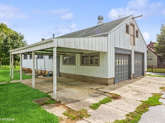 Unique home and out building in the heart of Harvard. 3+ bedroom, 1 bath older home, new exterior paint, roof and furnace approx 10 years old. 3 story shop very unique in purpose: approx 2300 square feet of space. Includes a 2 car garage, upper shop (heated), walk up attic, plus a complete full basement. Corner lot, bring your ideas and make this your new home.