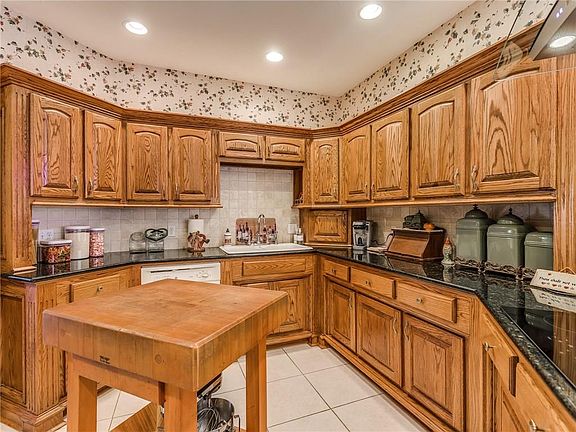Stunning home tucked away in the quaint Cedar Shores Addition located right in the heart of Shawnee. Dining, shopping, medical facilities and easy highway access are all just minutes away. This custom build offers 4 bedrooms, 2 living areas, 2 dining areas, a chef's kitchen with custom vent hood, smooth electric top range, double ovens and built-in butcher block cutting board. Cove and Cathedral ceilings, 8' french doors, 6inch baseboards, Oak wood work and trim, cultured marble window sills, engineered wood flooring, ceramic tile and newer paint throughout. Multi-level exterior maintenance free, composite wood decking is ideal for entertaining. Some of the upgraded, mechanical features include central vac, sprinkler system, water softener and newer water heater. Fully decked, energy efficient walk-in attic with R-60 insulation. Work shop in back is wired and pre-plumbed for a swimming pool. Beautiful, surrounding homes. An overload of quality and quantity combined!