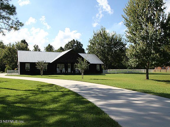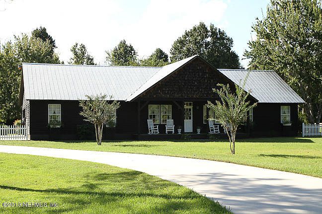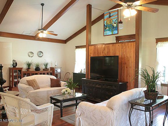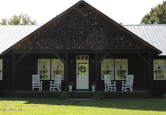 Custom contemporary with a hint of country, this home boast of hardwood, featuring gorgeous pine floors, cypress beams, & walnut cabinetry. Open concept w/cathedral ceilings, living/dining & kitchen spacious area of 30x40, & French doors that open to your private retreat screened patio. Enjoy a quiet sanctuary of acreage w/birds & wild turkeys to the wooded rear of property. Out-building conveniently located on concrete opposite garage. The bedroom/office area could easily be made into 3rd bedroom, doors originally installed, simply needs wall.