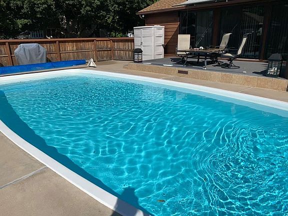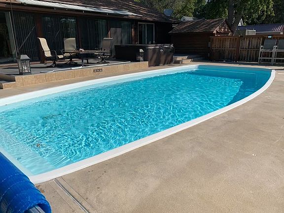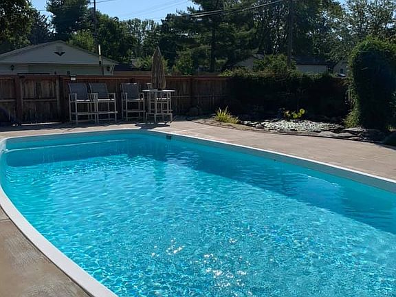 Very well maintained with open floor plan with solid oak Amish cabinets and pull out pantry. Hardwood floors are Brazilian cherry. Cathedral ceiling in great room. Gas fireplace with stone to ceiling. Southern exposure is all glass that leads out to the in ground pool hot tub koi pond and the pavilion.