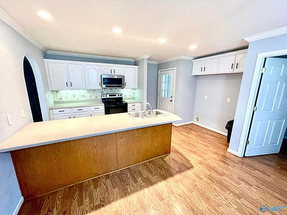 - Features: Crown Molding, Kitchen Island, Recessed Lighting, Vinyl