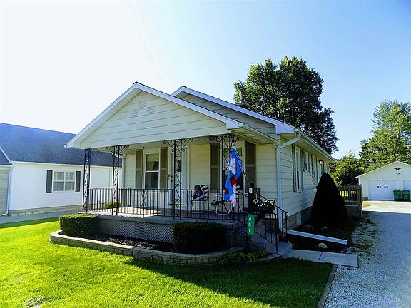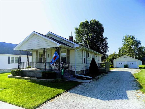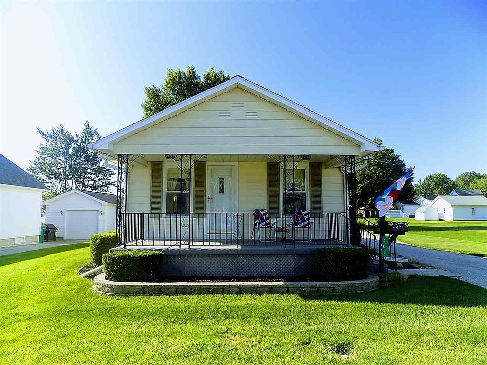 This cozy 3 bedroom home features nearly 1,100 sqft of living space and is within walking distance to downtown Greentown. As you enter through the front door you are greeted by an extra-large living room (optional dining room). The kitchen is big enough for an island or table as well. The master bed/bath and second bedroom are off the living room and a third bedroom or bonus room is located towards the back of the house. The landscaping has been well maintained and the home comes with a large detached garage. Other features include: 7 y/o roof, new water heater, covered front porch, insulated basement, water softener.