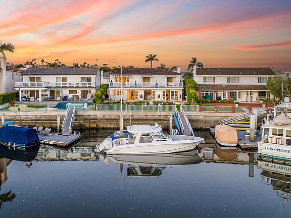 Location and design rarely combine to result in an offering as rare as 401 Evening Star Lane - a property exhaustively remodeled in 2022, reimagined for modern living and featuring exceptional design (and views!) at every turn. The 6,000-square-foot lot with 53 feet of frontage showcases an exquisitely appointed residence of approximately 3,698 square feet. The allure of this home begins at the curb, where the crisp facade and topiaries create an inviting entrance into the private courtyard. The interiors have been curated with bespoke finishes, from hand-selected marble to custom cabinetry, Italian hardwood flooring, lighting, custom millwork, and wall treatments. Abundance of natural light streams throughout the house, with the lower level dedicated to gathering spaces. Offering a traditional floor plan, the main level features an elegant living area with multiple sitting spaces, a dining room, and a fully appointed kitchen with a restaurant-grade Wolfe range, Subzero fridge/freezer/wine fridge/ beverage drawers and polished Arabescato Corchia countertop. Emphasizing the indoor-outdoor living concept are the expansive windows and multiple access points to the rare backyard. This coveted waterfront outdoor space offers a great lawn with a sitting area, fire pit, cedar tub, and, most alluringly, a new dock and pier. The thoughtful curation of spaces extends to the homes five bedrooms - each a sumptuous space with its own personality. The water-facing primary suite is a sanctum, with a lavishly appointed bathroom, an oversized walk-in closet, and direct access to the sundeck, which spans the length of this residence. The secondary bedrooms all feature exceptional design details, from built-in woodwork elements to custom window treatments. As functional as it is charming, this residence also features an epoxy-floor three-car garage and a spacious laundry room. Benefits of Dover Shores Association membership include exclusive access to its three beaches. 401 Evening Star Lane epitomizes whimsical Southern California waterfront living in which an intersection of leisure and style combine for a dream lifestyle.