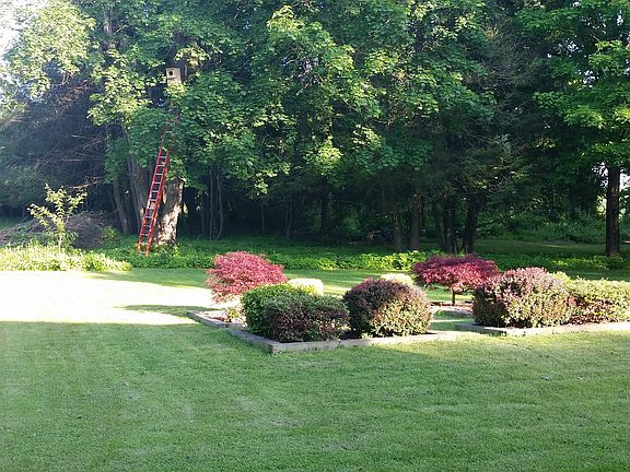 Gracious farming house on park like grounds surrounded by farm land. Enjoy the patio overlooking flowering shrubs and trees. 5 beds with large living room/ dining room, remodeled kitchen, newer oil tank, roof, furnace, water heater, and water tank. Heated sunroom and lots more.