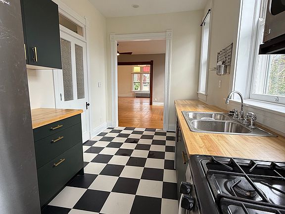 Historic Charm & Modern Updates on Fairfield Ave! 401 Fairfield Avenue, Bellevue, KY 41073 Experience the best of Bellevue in this beautifully updated apartment located directly on vibrant Fairfield Avenue. This spacious residence offers a perfect blend of classic elegance and modern comfort. Two large rooms divided by pocket doors with bonus office/walk-in closet room. Apartment Highlights: Bright & Spacious: Enjoy abundant natural light through large windows, including elegant bay windows. Refined Interiors: Features include gleaming hardwood floors, high ceilings, and charming decorative fireplaces. Historic pocket doors add character. Modern Kitchen: Updated with sleek dark cabinetry, butcher block countertops, and stainless steel appliances (including microwave & dishwasher). Classic black and white checkered floor. Contemporary Bathroom: Freshly renovated with a modern vanity, subway-tiled shower, and clean finishes. In-Unit Laundry: Dedicated washer and dryer for your convenience. Prime Bellevue Location: Walkable Lifestyle: Steps away from Fairfield Avenue's popular shops, diverse restaurants, and local entertainment. High Walk Score! Community Hub: Enjoy the vibrant local community and events like "First Fridays." Excellent Connectivity: Quick access to Newport on the Levee, downtown Cincinnati, and major highways for an easy commute or city exploration. Public Transit: Convenient TANK bus stops are nearby. Owner pays water, gas, and garbage. Tenant pays Duke Energy (electric)