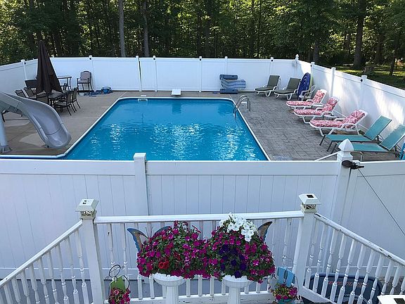 Rural home with 5 plus acres of land on a 10 acre lake. A gourmet kitchen with custom tile and counter tops and Brazilian cherry floors. 2 fireplaces - one in the master bedroom that is two sided; one side in the bedroom and the other in the master bath that has a whirlpool tub and separate shower. A heated/cooled in-ground pool abuts a 960 square foot deck that has a 270 sq foot all year sun room. The house also has a whole house generator, a 7KW grid tie solar panel system, and an exercise room. An additional detached garage and workshop that is 1800 square feet was added last year.