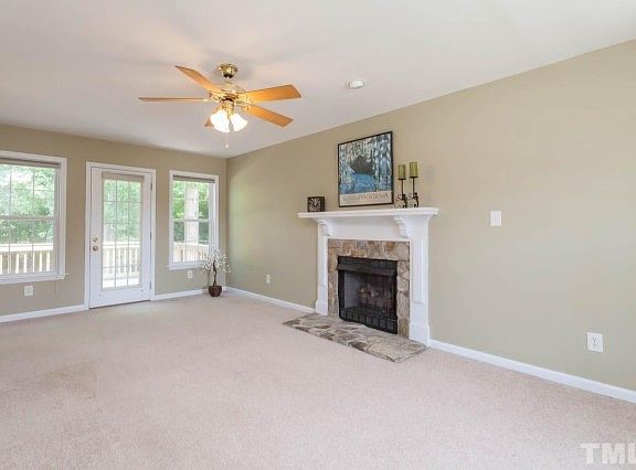 Beautiful South Creek home with rocking chair front porch! 4 BR, 2.5 baths. Hardwood floors in foyer, dining, kitchen. Large living room with gas log fireplace. Formal dining room, breakfast area. Kitchen has Oak Cabinets, Smoothtop Range,Pantry. Fresh paint! Large master bedroom with cathedral ceiling, roomy bath with garden tub and seperate shower, dual vanities. Two large secondary bedrooms. Bonus could be fourth bed. Large flat backyard backs to woods. Minutes to shopping and dining!