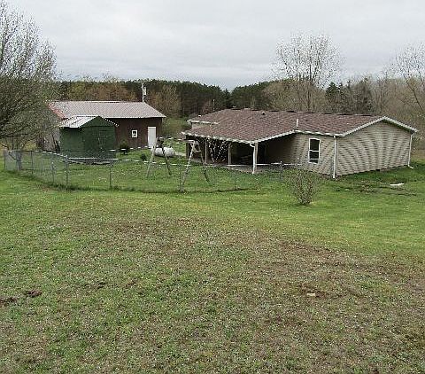 **PRICED BELOW ASSESSMENT**PRICED TO SELL FAST- Affordable family living on 5 acres in the country. This Aurora model features 3beds-2baths and an open concept. Enter your foyer where the included washer and dryer are. From the laundry room you have a large kitchen with plenty of cabinets and counter space. Skylights and vaulted ceilings throughout. The open kitchen opens up to the large living room. Featuring a pellet stove near the windows that overlook your land and pond. The hallway leads you to the 3bedrooms and full bath. Inside the master bedroom you will find a walk-in closet and the perfect layout of the master bath. Boasting deep soaker tub and a separate shower with glass doors. Outside the home there is a covered patio area, fenced in portion for puppies or playtime, and a great big yard. The two outbuildings consist of storage shed and 24x30 board and batten garage with 2 10x10 overhead doors and side man door. House has a brand new 30yr architectural roof. Behind the barn is your remaining property consisting of mixed variety of woods, grassy areas, and a portion of neighboring pond. This affordable living has a little of EVERYTHING an out door enthusiast must have. 4.5 miles form "5 corners" of Frewsburg, a half mile after Wheeler rd on Frew-Run. Call now to come see for yourself, before its gone!
