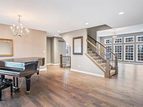 Nestled on a serene .77-acre wooded lot, this exceptional home offers 5 bedrooms, 4.5 baths, and over 5,600 sq. ft. of living space designed with comfort and elegance in mind. The main floor features a luxurious primary suite with a spa-like bath, a hearth room with a gas fireplace, and a chef’s kitchen boasting quartz countertops, stainless steel appliances, a gas cooktop, double ovens, an island, a breakfast bar, and a walk-in pantry. Hardwood floors and 9-foot ceilings add to the charm.