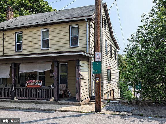 3 bedroom 1 and a 1/2 bath home overlooking Tamaqua and mountain views. Enter through the living room into an open concept  dining room and kitchen area. Dining room has a large bay window and coat closet with  original style door knob, that could be transformed into a pantry or possibly a half bath, beautiful tiffany style light hangs above the dining room table. The kitchen with it's cathedral style ceiling gives an additional open feel and has a breakfast bar, built in oven, range top and sliding glass doors to a balcony overlooking Tamaqua and the mountains, a great place to sit and reflect on the day ahead. Seller believes that there may possibly be hardwood floors under carpets. As you head up to the second floor notice the original, now painted wood stair railing, with it's solid posts and spindles. The second floor offers 3 separate bedrooms, all nicely sized and with deep closets, and a full bath with step in shower. The attic is finished and has 2 storage nooks, could be an additional bedroom but would require heat. The basement features 3 separate areas/sections, the first is the laundry area, and  half bath with a double sink, the second section is a finished room that would make a great family room, or a large office, or a craft area or an additional space for your needs, the third section is the utility room with furnace and oil tank is out of the way and in the back, there are 2 walk out doors one leads to a second balcony with stairs and the other is a side door. This home has a good-size, well laid out floor plan and has many original features throughout.  Must see to appreciate and decide if you want to make this House your Home.