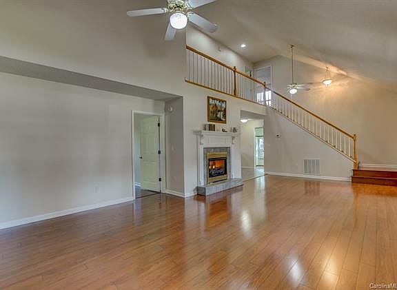 Cute 3 Bed 2.5 bath home on 0.37 acres. Home warranty included. Beautiful LEVEL tree shaded yard with fenced areas perfect for pets and has a play set. The big newly constructed deck and spacious yard make this home perfect for outdoor living. It has an open living room with vaulted ceilings, rich wood laminate flooring and 2 gas fireplaces. Main level features master bedroom with en suite bath, kitchen with ample storage space, breakfast bar and separate dining area. The large family room on main floor has separate entrance and half bath making it perfect for a home based business. Upstairs has two additional bedrooms featuring "Jack and Jill" bath PLUS a bonus room with fireplace could be used as den/office or extra bedroom. This great corner location has access from both streets. Close to Fletcher Park, short drive to South Asheville and convenient to Hendersonville.