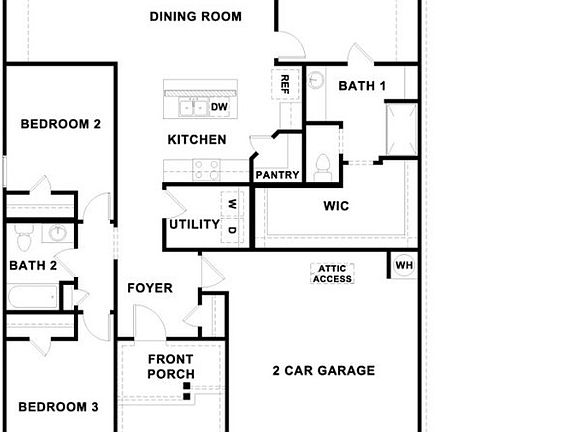 The Denton is a single story home offering 1,566 sq. ft. of living space across 3 bedrooms and 2 bathrooms. The kitchen features granite countertops, stainless steel appliances and a walk-in pantry. The large kitchen island is open to the dining area and family room, perfect for entertaining. The main bedroom, bedroom 1, is off the dining area and features a huge walk-in closet and walk-in shower. The secondary bedrooms are on the opposite side of the home and share a spacious extra bathroom, bathroom 2, in between them. Enjoy the covered patio, full yard professional irrigation and landscaping complete with Bermuda sod. This home includes our HOME IS CONNECTED base package which includes the Alexa Voice control, Front Door Bell, Front Door Deadbolt Lock, Home Hub, Light Switch, and Thermostat.