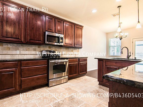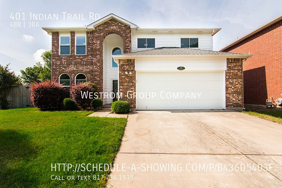 This 2451 square foot single family home has 4 bedrooms and 2.5 bathrooms. This home is located at 401 Indian Trail Rd, Roanoke, TX 76262.
