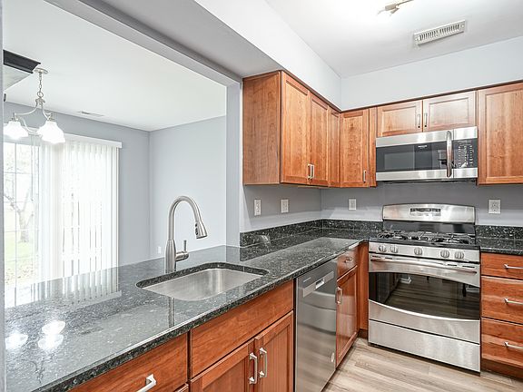 Upgraded and Spacious Townhome in the Sought-After Le Club Community! Step into this beautifully updated townhome where comfort meets style. The inviting foyer welcomes you with durable waterproof luxury vinyl flooring that extends through most of the first-floor living space, offering both elegance and durability. The exceptional kitchen has been fully renovated to meet modern standards. It features stylish granite countertops, soft-close cabinetry, and a full stainless steel appliance package. Enjoy preparing meals on a 5-burner gas stove, complemented by a new dishwasher, a microwave/hood combination, and a sleek Frigidaire refrigerator. Adjacent to the kitchen, the dining area offers a cozy space for family gatherings and casual meals. Sliding glass doors lead to the rear grounds, where a quaint concrete patio provides the perfect outdoor space for relaxation or entertaining. The living room is a true showstopper, with soaring cathedral ceilings and two skylights that allow natural light to pour in. A brick wood-burning fireplace with a slate surround and base adds warmth and character, making it the perfect spot for cozy evenings by the TV. Upstairs, the second floor features three generously sized bedrooms, all complete with stylish vinyl plank flooring and ceiling fans for added comfort. The primary suite, measuring 15' x 12', boasts a spacious walk-in closet and a beautifully updated en-suite bathroom. The master bath features custom tile flooring and a glass stall shower with elegantly tiled walls, offering a spa-like retreat. Additional storage space abounds with a one-car garage and attic access through a scuttle for extra storage needs. This stunning townhome blends comfort, elegance, and functionality, making it the perfect place to call home for years to come. Don't miss the opportunity to make it yours!