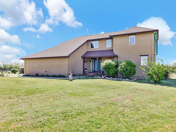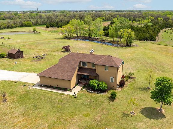 The acreage you have been waiting for on a paved frontage. 2 bedrooms above grade, with space to add one on upper level, 2 bonus rooms in basement. Designed for energy efficiency, this home is very efficient! Relax in the backyard outside your walkout basement, where you can watch the deer, turkey, ducks and other wildlife as they come for a drink at the small pond. Horses are allowed, property is not currently fenced. 2x6 construction and property was annexed into Valley Center 15 years ago and on RW #2. 16x12 garden shed transfers to buyer.
