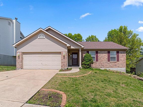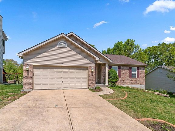 3 bed 2 1/2 bath ranch ready for you to make your very own! Enter into the great room to find vaulted ceilings and a beautiful fire place. The open kitchen/living room leads to a composite deck, overlooking the large flat backyard. 3 spacious bedrooms complete the main level before heading down into the lower level is finished featuring a large family room with windows, a half bath, and TONS of storage! There is also a bonus room that could be used as a workshop or rec room. The roof is under 5 years old. Located minutes away from Gravois Bluffs shopping center and interstate 270. Home is being sold AS IS with no inspections or repairs to be done/had by sellers.