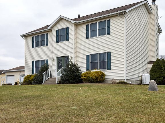 WOW - what a view! If you have always dreamed of living in the country, this home is for you. Well-maintained/Non-smoking - 4 bedroom home is perfect for the larger family. Large sized bedrooms with lots of closet space. Kitchen and family room open floor plan. Large dining room with hardwood flooring. No need to go up and down steps to do laundry - washer and dryer is on the 2nd floor with bedrooms. New roof in 2018. New HVAC system 12/2022. New double entry way door 11/2022. Septic tank emptied 1/2023. Sits on just over 3 acres. Plenty of room to do whatever you wish - go carts, 4 wheelers, etc. Oversized 3 car workshop/garage is perfect for storage and working on those toys. This is a MUST SEE! Don't miss out. *Hot tub is not working*