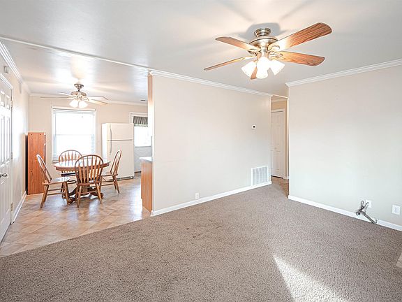 You do not want to miss this adorable, meticulously maintained home on the north side in Country Club Meadows. Before you walk through the front door, notice the fabulous front porch. Inside, you'll find a spacious living room with great natural light. Head into the perfectly sized eat-in kitchen with laundry area and direct access to outside patio. All three bedrooms have great closet space and ceiling fans. The sizable bathroom has great storage and a shower/tub combo. Head outside through the back door located just off of the kitchen into an incredible, concrete patio. The home has a one car attached garage and a detached 2.5 car garage with separate driveway providing tons of parking for family and friends. Newer hot water heater, HVAC, plus so much more!