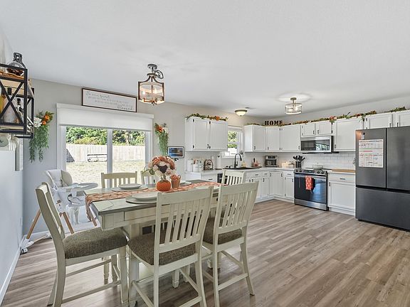 Feel right at home when you walk up to your long covered porch and are welcomed into your home with the open floor plan. This home features a great floor plan, an open kitchen, living room, dining area, and a split bedroom layout. The primary en-suite also has custom built walk in closet. The guest bathroom has a large closet for extra storage. There is a large fenced in backyard with a very large shed that is separated into 2 different areas. Did I mention there is no HOA, no fees or association at all! Come see this amazing property today! It won't last long. New paint throughout in 2022 including the cabinets along with new custom shades in the primary bedroom, livingroom and patio door, new flooring throughout in 2023, new dishwasher, fridge, range and over the range microwave in 2023 smart appliances.