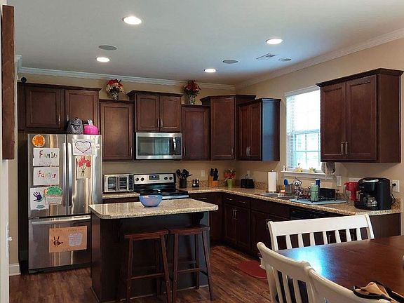 Amazing 4 bedroom cul-de-sac home with OPEN floorplan and high ceilings. Covered front porch leads into 2 story foyer, gorgeous laminate floors, gas log fireplace and kitchen island. Enjoy the weather on the screened porch while you grill on the patio using the permanent natural gas hook up. Backyard is awesome, flat and private. First floor office with French doors and four large bedrooms upstairs. Master has huge walk-in-closet and master bath has dual sinks and large walk-in shower. Kitchen has beautiful stained cabinets, smooth top range and built-in microwave. Refrigerator stays with house! Mudroom/ laundry off of kitchen leads to generous 2 car garage. Awesome neighborhood pool and lots of walking trails. Very NICE!