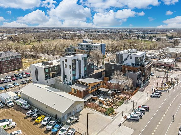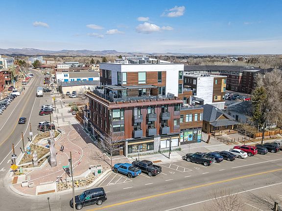 An exquisite living experience in the heart of the coveted Old Town River District. This 2-story townhome-style loft has soaring ceilings, luxury finishes and postcard-perfect views. The nearly full wall windows flood the home with natural light and feature newly-installed, custom window coverings. Overlooks the Poudre Trail, New Belgium Brewery and expansive Northern views. Building boasts chic entertaining spaces, dog wash room, bike storage room, covered on-site parking space and exceptional access to premier dining, shopping, access to the Poudre River Trail and a 5 minute walk to Old Town Square. Tankless water heater, high-efficiency forced furnace and AC, Acoustical treatment between units, washer and dryer included.