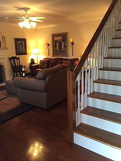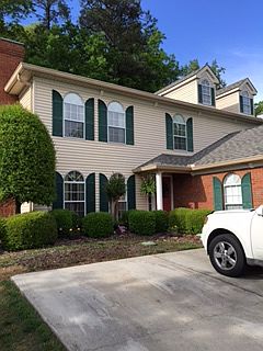 Ready to move in, painted year ago, wood floors downstairs, ceramic tile in Kitchen, laundry room, and all baths. Garage converted to office. Beautiful patio with concrete and brick pavers, outdoor track lighting front and back. Gas logs. End unit. Back is all wooded and private. Great neighbors. Short walk to all amenities including clubhouse, tennis courts, pool, walking track, and fishing lake.