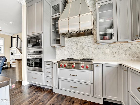 - Attic, Crown Molding, Kitchen Island, Pantry, Pull Down Attic Stairs, Recessed Lighting, Natural Woodwork, Window Treatments