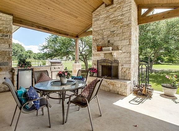 RARE FIND! Acreage just minutes to DT Dripping! LOW tax rate of 2.25. NO MUD. Outdoor Living DELUXE! 4 bed 3 bath tucked away on a beautiful 1.46 acre corner lot boasting of mature oak trees. Soaring 20' ceilings, 2 living spaces, granite counters, spacious secondary bedrooms, large windows throughout and private master retreat. Enjoy evenings under this fully covered outdoor porch complete with stone fireplace, outdoor kitchen & magnificent backyard w/ full wrought iron fencing! DSISD