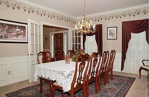 - Interior Features: Upgraded Countertops, Master Bath(s), Crown Moldings, Recessed Lighting, Chair Railings, Wainscotting, Curved Staircase, Dining Area, Kitchen - Eat-In, Family Room Off Kitchen, Kitchen - Island, Attic, Carpet, Pantry