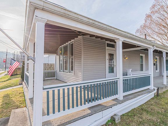 Nothing more American than living on Main Street!! Updated Charming Cottage with wrap-around porch, fenced backyard w/deck, stainless appliances, laminate and hardwood floors throughout make it super easy for pet owners! Most of all- a 2 car garage offers a place for a workshop or just wonderful covered parking!
