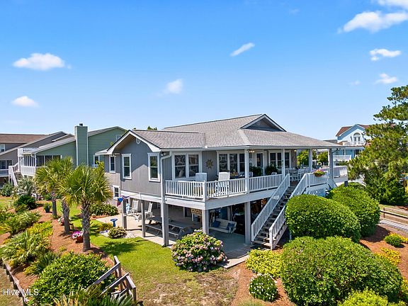 The outdoor spaces are equally impressive. The deck serves as the perfect perch for sunrise views, while spacious wraparound porches invite relaxed mornings spent savoring coastal breezes. A new aluminum floating dock combines durability and low maintenance, offering resistance to rust, easy installation, and adaptability to water-level changes—ideal for seamless waterfront living. Beneath the elevated home, you'll find a shaded retreat complete with comfortable seating areas, secure storage, and a large beach shower (historically unaffected by tides).