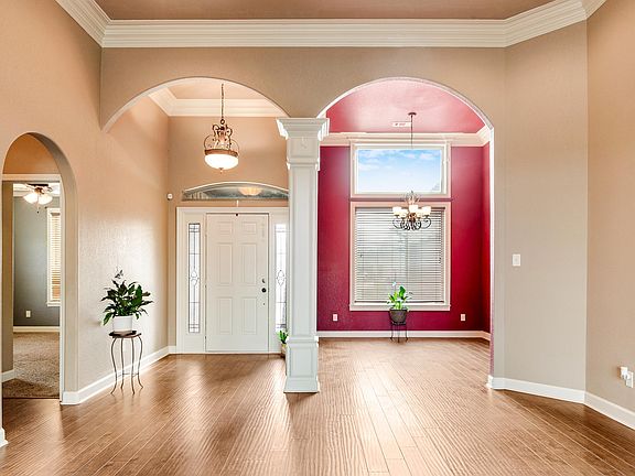 This immaculate, stunning home has it all! Enter to beautiful arches, lofty ceilings, and large windows providing ample natural light. Great room opens to formal dining and kitchen. Stainless appliances and granite counters are some of the great features of the kitchen. Primary bedroom features massive dream closet with built in drawers and en suite bath with double sinks, jetted tub, and walk-in tile shower. Extensive moulding and other details throughout add such a luxury feel. Fully fenced backyard is very spacious.