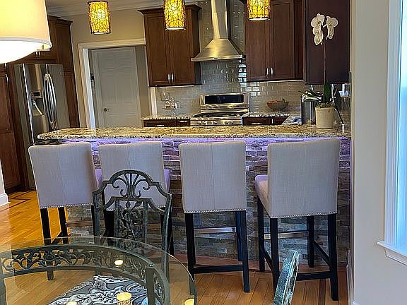 This gorgeous, recently updated, transitional-style, 4-bedroom, 2-1/2 bath home with an open floor plan is located in the highly desirable community, Snowy Owl Woods. The original owner maintains the manicured, corner property nestled against a natural preserve ravine. There are custom hardwood floors throughout and a wood staircase, with rod iron spindles, that warmly welcomes guests into the immaculate home. The kitchen is updated with custom soft-close cabinetry, upgraded granite countertops, and quality stainless steel appliances, including a Viking wine cooler. The large, master bedroom has a tray-ceiling with chandelier, a custom walk-in closet, custom window treatments, and a custom spa bath finished with light grey and white marble, European-style shower, high-end Italian fixtures, and stack stone wall with double-sided gas fireplace. The recently updated main bath also is custom designed. The home’s textured, custom, accent wall designs include: a pallet-style wall in the study/play room; stack stone walls on the breakfast bar, great room, and master bath; and grasscloth covering in the living room. The home’s 2 gas fireplaces are ideally located for the homeowner’s enjoyment: 1 in the great room, the other, a see-through fireplace, is warm and relaxing from both the master bedroom and master spa bath. Find refuge from life’s demands while listening to nature’s serenade dawn to well past dusk on the manicured property with breath-taking custom landscape and hardscape designs, including the entranceway, walkways, and large patio that is ideal for entertaining. Low-voltage, cast iron lighting throughout the property with tree-mounted lighting over the fire pit area for evening entertainment. Additional features and upgrades to the home include: 2nd floor laundry room; all bathrooms have top-flush, low-flow, high-end toilets; custom crown molding trim throughout most of the home; wood trim encasing all windows and doorways; custom window treatments, including Hunter Douglas Silhouette shades on most 1st floor windows; Plantation-style shutters on most 2nd floor windows; all front and side windows have UV protection; closet organizers throughout; in-home stereo speakers on the 1st floor; lawn’s sprinkler system with underground bed drip-irrigation; updated alarm and fire systems; newer Carrier high-efficiency HVAC system with WiFi thermostat; newer roof; Lutron light switches; holiday lighting package; sealed garage floor; and public water, sewer, and natural gas. All appliances as is, no warranty. TVs not included. One owner holds a NJ real estate license. House will remain on the market until all contingencies are satisfied. All offers must be accompanied with a pre-approval letter and proof-of-funds.Closing date, July 2021. By appointment only by calling Jeff @ 609. 381.7277.
