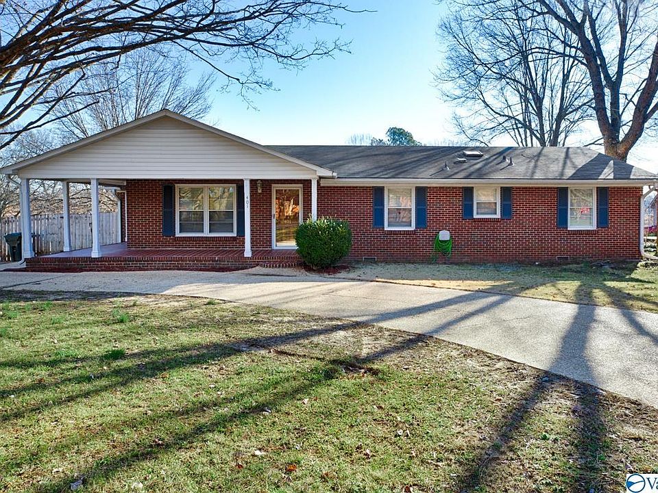 Well-maintained brick rancher situated on a corner lot. L-Shaped front porch wraps around the spacious living room to the flex/bonus room. Home features 3 large bedrooms, 2 baths. Master bedroom on-suite with tile shower. Kitchen w/ Glass Cooktop ??? stainless steel range/oven, Microwave, Refrigerator & dishwasher. Sliding glass door leads to back deck with bench seating. Partially fenced rear yard, with detached garage, basketball goal and extra parking. Ample parking in the front as well, featuring a circular drive. No Showings Until 3/29/22 due to workers on site.