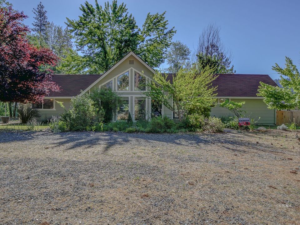 Intown 3/2 single level home on 1/2 acre ! HUGE Big Price Drop!!!! Check out This single level 3-bedroom 2 bath home centrally located in the heart of Weaverville offering open living with lots of natural light, vaulted ceilings and walls of windows off the dining, kitchen and living room! As you enter the tiled foyer you will find the guest bedrooms & bath to one side of the home, and main living area and primary bedroom w/ on-suite to the other side w/ slider to back patio and yard. The kitchen has lots of cabinetry w/ stainless appliances, an island and large banquet that is all open into the living room. Newly installed Mini splits throughout. Freshly painted exterior, circular driveway with lots of room for parking, detached garage w/ storage rooms. All on a half-acre with fenced back yard that has large, covered gazebo, garden area, plus a lower field that goes back to a small creek with fenced pig pens, garden area and carport parking for boat, trailer or additional toys!