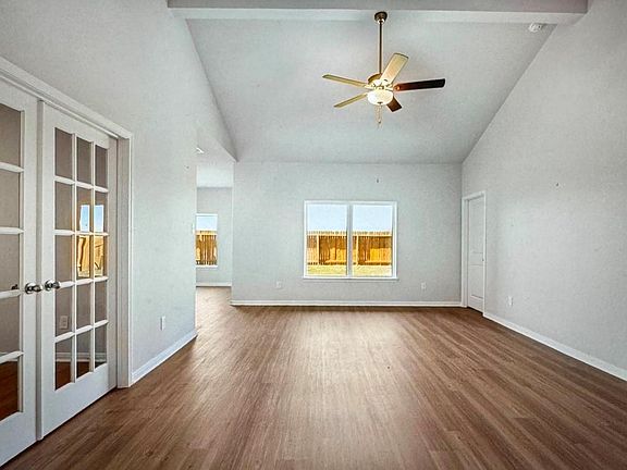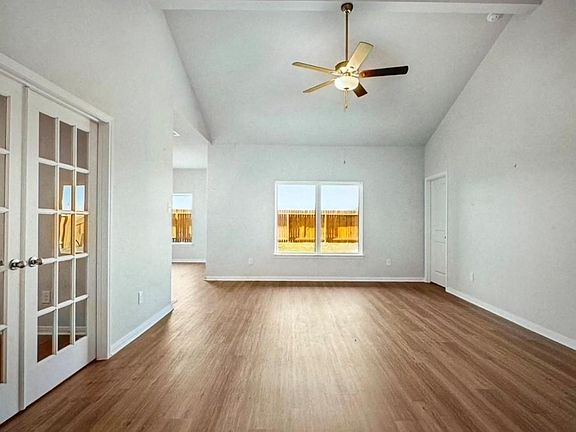 Gorgeous new home- The Ranch floor plan on a beautiful large corner lot ready to move IN. Beautifully designed with high ceiling living room and beautiful extra room has a closet and double glass door that opens up the living area. This extra Room can be used as 4th bedroom, study, media room, play area or just a romantic room as you wish, the choice is vast. all rooms with good size closets and storages. Chef's kitchen with Granit island and countertops, stainless steel appliances and fridge. Dinning room has a door that opens up to a good size 'back covered patio. Corner lot with large backyard.