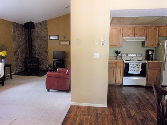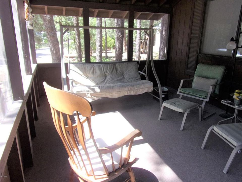 Adorable cabin with a large screened in porch, new roof, new carpet and newly painted, new gas heater(fireplace)in living room. The front porch adds so much space that is not included in the square footage, its perfect for living in the White Mountains and enjoying the cool summer breezes. There is a real since of privacy the way the home is situated. Additionally there is a storage room, ''bunkhouse'', craft room,workshop, it has been used for all of these. You must see to really appreciate this cabin in the mountains.