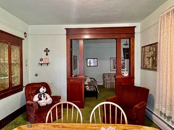 This cute & cozy home is on a corner lot in White Sulphur Springs. Two bedrooms, 1 bath, kitchen & formal dining, two mudrooms, and an unfinished second level for a possible primary bedroom & bathroom. The large yard is chain link fenced & there is a one car garage that resembles what once may have been a carriage house. The original woodwork is still intact in the home taking you back in history. White Sulphur Springs has the modern conveniences such as grocery stores, banks, a hospital, retails stores, and great eateries. The area is well known for recreation such as hunting, fishing, snowmobiling, hiking, and more. White Sulphur Springs is about 25 minutes from Showdown Ski Area.