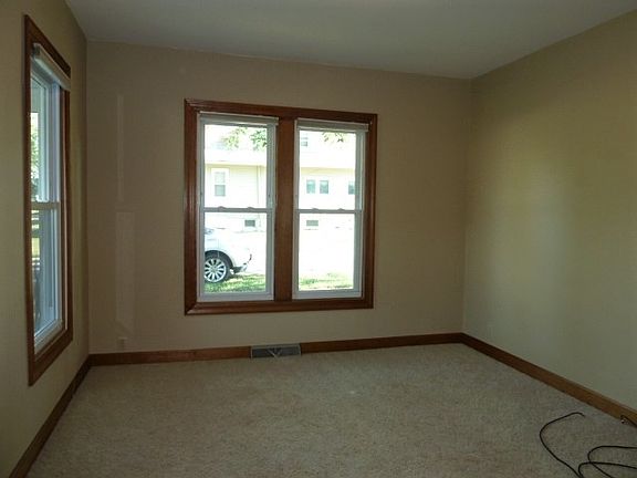 Cute corner lot bungalow, has mostly replacement windows, except kitchen has Anderson windows, nice trim work, lots of kitchen cabinets, spacious bathroom with ceramic tile floor, laundry is in closet of bathroom. One car detached garage, front porch and nice 11x16 deck attached to back of house off kitchen. Living, dining and front bedroom recently painted.