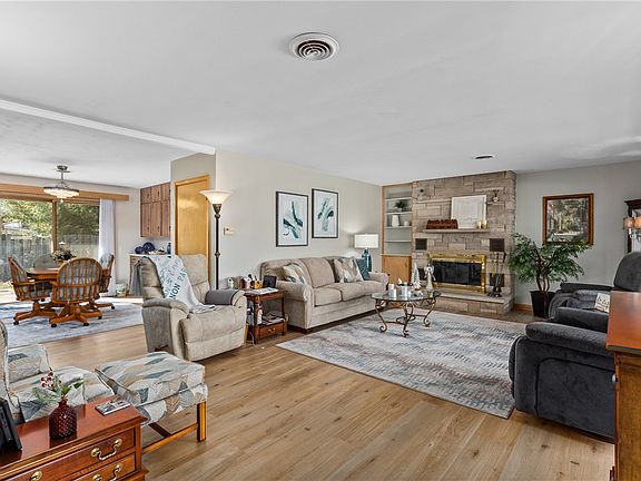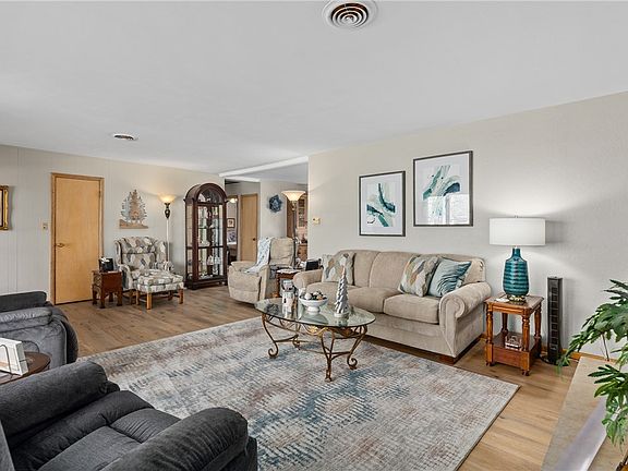 Here is a Rare Gem in Ttown! This 3 bedroom 2 bath ranch home has views like no other home in the area! Only the house is for sale on the lot is sits on. This home has been in the same family since it was constructed in 1960. Updates include the roof, gutter hellmets, kitchen counter tops, all new flooring, and newer showers (no tub). Step inside to a large living room with gas fireplace (hasn't been used in several years), nice flow to the dining room with built-in hutch and buffet, to the kitchen with lots of cabinets and appliances stay, to a breezeway area with pantry and outside access. Split bedroom design, two nice bathrooms, a basement that is partially finished with a family room, and an office/bedroom, and loads of storage. Sump pump with water jet backup. Two Whole House Fans! An oversized 31x26 2 car garage! The back 26x16 patio is great for enjoying the flowers all around. The front 18x12 patio is great for views of the pond across the street! This home is move in ready!