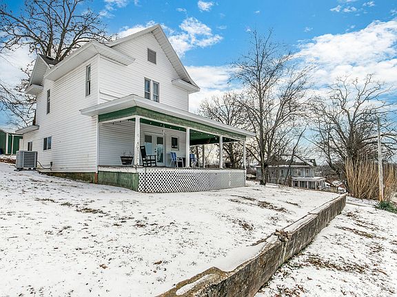 Updated 1800's farm style home with large wrap-around front porch!  Featuring 3 bed/2baths, a 30x40 shop with 2 bays, fresh paint, kitchen cabinets, counters, & appliances!  This home sits on top of a wonderful hill overlooking the neighborhood pool and skatepark.  Kitchen features beautiful white cabinets, updated light fixtures, stainless appliances, a wood coffered ceiling, bar seating, and hardwood floors.  Off the kitchen is a living room with brick fireplace and the dining room.  Main floor bathroom is updated with patterned floor tile, and the mudroom features washer/dryer hookups, a utility sink, and a walk-in pantry!  The upstairs boasts 3 great-sized bedrooms and a brand full bathroom with new vanity, tiled shower, and flooring!  The shop features 220V electric and is insulated with concrete flooring.  Roof is only 6 months old, new hot water heater, HVAC, and electrical.  Avg utilities run $200 a month.  Call to schedule your showing today!
