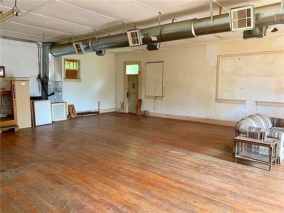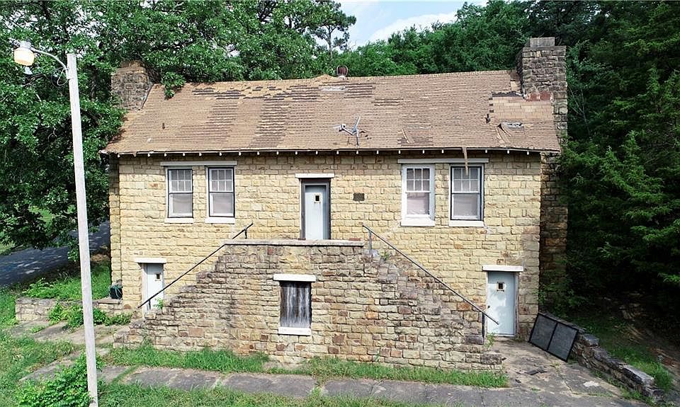 So much potential!! This property is the old Poteau Public Library and has been modified into a studio style home. The upstairs level has 2 fireplaces. Bathroom and shower have been added. The basement is open as well with 2 half baths (one needing a commode) and a kitchenette. Could make a great home or duplex with some work.