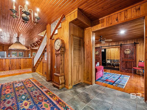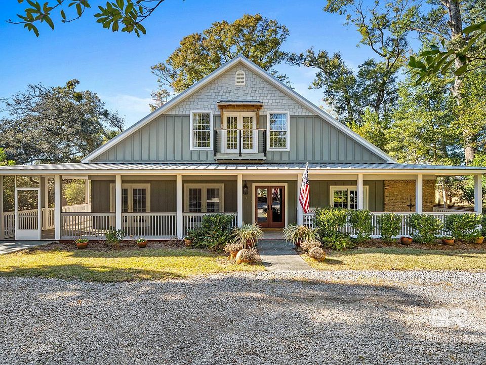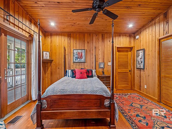 Captivating 3 bedroom 3 bath custom home on a 1.72-acre estate in beautiful Fairhope, overlooking Mobile Bay. Pecky Cypress walls create a unique charm. Panoramic sunset views with 100+ ft on the bay. Open floor plan, French doors to wrap-around porches. Central kitchen ideal for entertaining. Charming details include two outdoor showers, grilling station, and multiple sitting and entertaining areas. Enjoy a music room, media room, and game room, adding to the allure of this unique property. Additionally, there's an income-producing 2 bedroom/ 2.5 bath 30-day rental guest house. Must see to truly appreciate the delightful features and character of this coastal retreat!