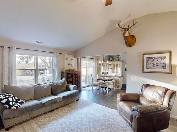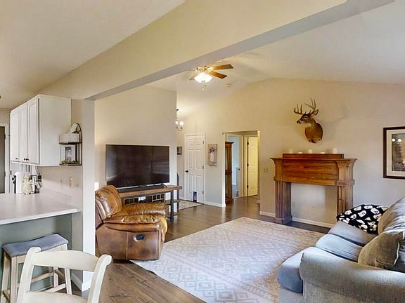 Beautifully renovated home in South Whitley with private sunset views and whimsical landscaping. A Spacious 2Car, heated attached garage & covered porch welcome you to this 3B/2BA, split floor plan, 1296 sqft home. You'll walk past established landscaping to a foyer, coat closet & open living room w/vaulted ceilings & Pergo waterproof laminate flooring throughout. On your left are two pretty, & beautifully sunny bedrooms with full bathroom & linen closet between. The kitchen, accessible from the garage, boasts fresh cabinet paint, bar stool seating, & ample cabinet/pantry space. Whirlpool brushed stainless appliances make cooking a little more fun. Laundry is easy to manage with dedicated room and natural morning light. A peaceful master bedroom, full bathroom & walk-in closet round out the interior. Past the patio door a private oasis w/chiminea, established butterfly garden, raised vegetable beds, and stone play area calls to you. Private field view and sunsets evoke countryside emotions. This home is loved & isn't going to last — schedule your showing before it's gone.