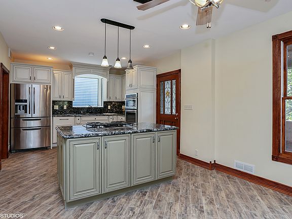 Completely renovated 3 bed/3 bath home with spectacular river views. Location is close to Metra yet peaceful and tranquil with unobstructed views of the water. Great floor plan for entertaining- Kitchen with high end finishes - stainless steel appliances and roomy, eat-in area. All bedrooms with en suite baths. Master bedroom spa retreat is entire second floor w/ balcony! 2 fireplaces, 3 level deck, dog run and heated garage that can accommodate a boat.