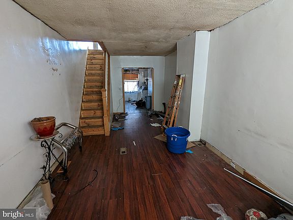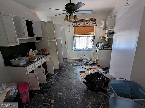 This porch front rowhome located in the Ellwood Park/Monument neighborhood of Baltimore City needs work but it has many things going for it and is a great opportunity. The property offers a standard Baltimore rowhome layout over 3 levels. The main level consists of a large living room and dining room combination and kitchen. The upper level offers two bedrooms, one full bath and an open area between the bedrooms that could be an office or play area. The lower level consists of an unfinished basement. The mechanical systems and electric panel have been updated and appear to be relatively recent. There is a copper line that runs to the roof from the HVAC unit for an air conditioning condenser unit. It is suspected that there is a unit on the roof but buyer would need to verify. The rear yard consists of a cute court yard with brick retaining wall. The property is sold in fee simple with no ground rents. The property is priced well and is sold in as is condition.